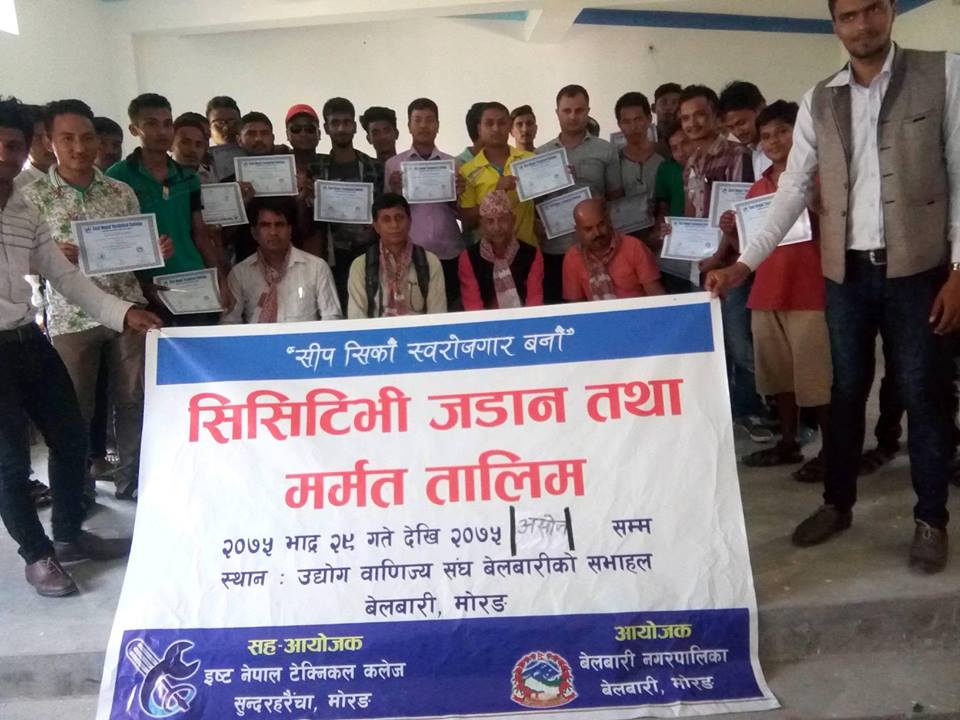 एक वडा एक प्राविधिक उत्पादन गर्ने गरी नगरपालिकाले तालिमहको आयोजना गरिएको उनले बताए । प्रबिधिमैत्रि नगरकारुपमा बेलबारीलाई विकास गरिने उनले बताए । ३ दर्जन भन्दा बढी सहभागी तालिममा २१ दिन सम्म चलेको थियो ।