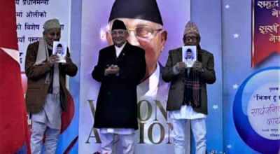 काठमाडौँ, फागुन १० । ६९औँ जन्मदिनको अवसर पारेर प्रधानमन्त्री केपी शर्मा ओलीले पुस्तक ‘भिजन टु एक्सन’ सार्वजनिक भएको छ ।
