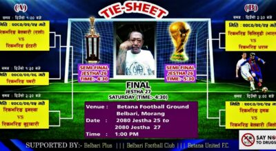 बेलबारी । बेलबारीमा “प्रथम सुरज राई स्मृति रिकभरिङ अन्तर्राष्ट्रिय फुटबल प्रतियोगिता २०८०” हुने भएको छ । यही ज्येष्ठ २५ गते