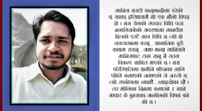 आलोक खनाल – २५ जेठ । सामान्यतया मानव जाति एक विवेकशील र चेतनशील प्राणी हो । यी दुवै शब्दहरूको अर्थ मानिसलाई