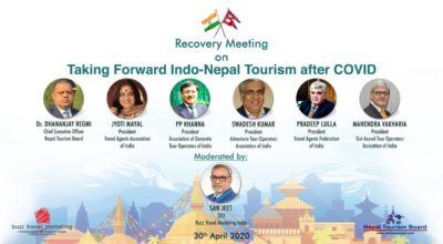 काठमाडौँ, १९ वैशाख । नेपाल पर्यटन बोर्डका कार्यकारी प्रमुख डा. धनञ्जय रेग्मीले २०७७ वैशाख १८ मा भारतका पर्यटन सङ्घ–संस्थाका प्रमुसखहरुसँग