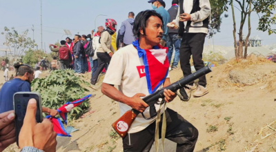 काठमाडौं । काठमाडौँको तीनकुनेमा राजावादीले सुरक्षाकर्मीको बोकेको बन्दुक खोसेका छन् । तीनकुनेमा राजावादीको प्रदर्शनले उग्र बनेको छ । प्रदर्शनकारीले प्रहरीले