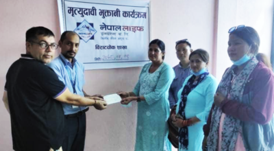 सुन्दरहरैंचा, २१ असोज । मोरङको सुन्दरहरैंचा स्थित नेपाल लाइफ इन्स्योरेन्स कम्पनीले मृतकको परिवारलाई मृत्यु दाबी भुक्तानी गरेको छ । कम्पनीले श्रीमती
