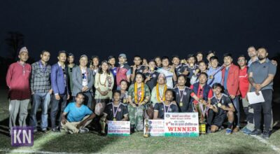 बेलबारी । बेलबारी नगरपालिका वडा नं.४ को बेतना खेलमैदानमा भएको ५ औँ वडा स्तरीय मेयरकप फुटबल प्रतियोगिताको उपाधि बेलबारी १