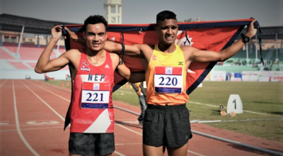 काठमाडौँ , २१ मङ्सिर । १३ औँ दक्षिण एसियाली खेलकुद (साग) मा नेपालले म्याराथनमा थप स्वर्ण पदक जितेको छ ।