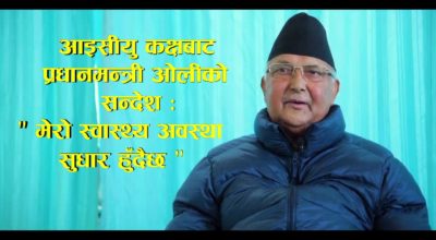 काठमाडौँ, १६ मङ्सिर / प्रधानमन्त्री केपी शर्मा ओलीले आफ्नो स्वास्थ्यमा सुधार भइरहेको जानकारी गराएका छन् । मनमोहन कार्डियोथोरासिक भास्कुलर तथा