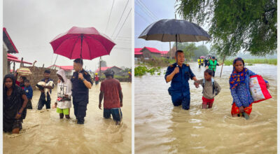 मोरङ । अविरल वर्षाका कारण उत्पन्न बाढी र डुबानले मोरङ जिल्लाका विभिन्न स्थान उच्च जोखिममा परेको बेला प्रहरी उपरीक्षक कवित
