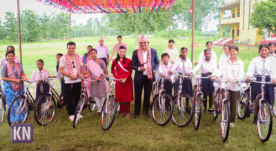 विराटनगर । कोशी प्रदेशका मुख्यमन्त्री हिक्मतकुमार कार्कीले झापाको गौरीगञ्जमा आयोजित एक समारोहका बिच गरिब तथा जेहनदार विद्यार्थीहरूलाई साइकल वितरण गरेका